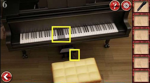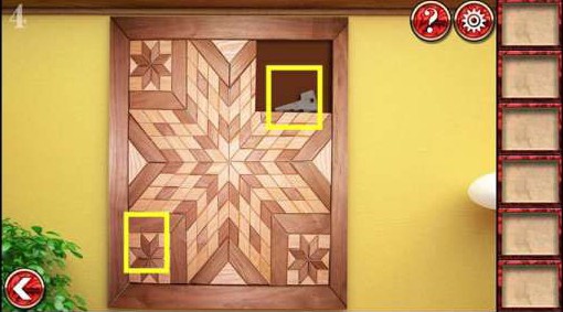 10、上去点开绿色两幅壁画,将旋钮放上,根据上图的位置来选择调整,完成后拿到钥匙。