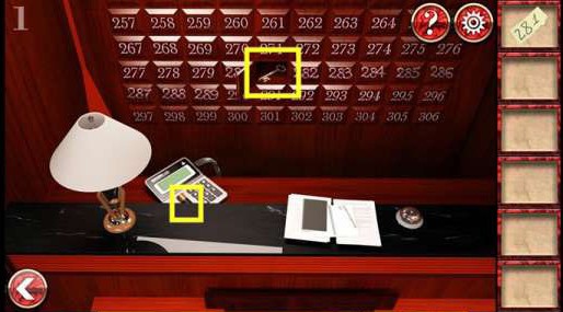 5、把桌子上的字条跟前面收集的字条合并得到数字281,再收集桌子上的钥匙(如上图所示)。