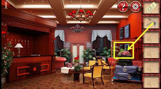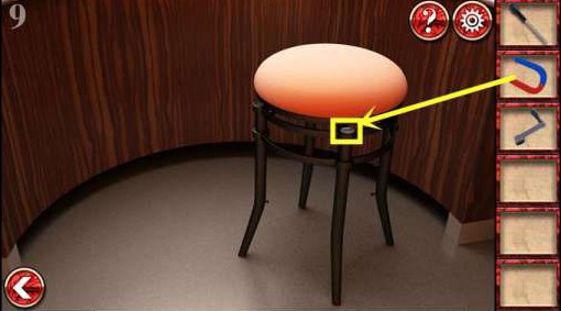 1、在左边椅子上拿到钩子。