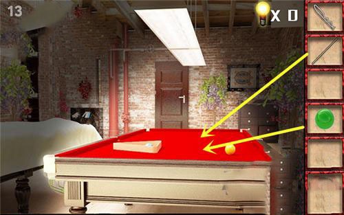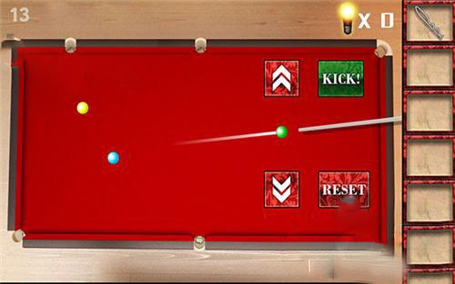 3、用手套将左边台球桌上的灯管取下,再点开布拿到绿球。