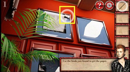 3、用钩子把画上的字条钩下来(如上图所示)。
