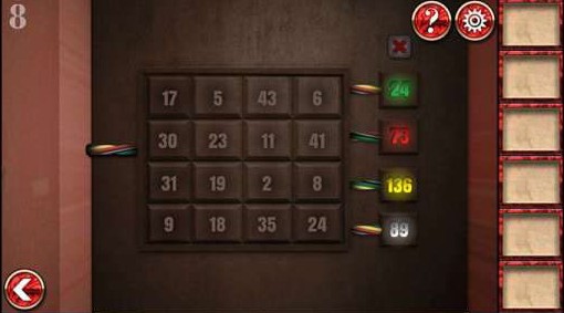 7、调整箱子里面的数字位置,使每排数字相加等于右边的数字。