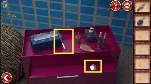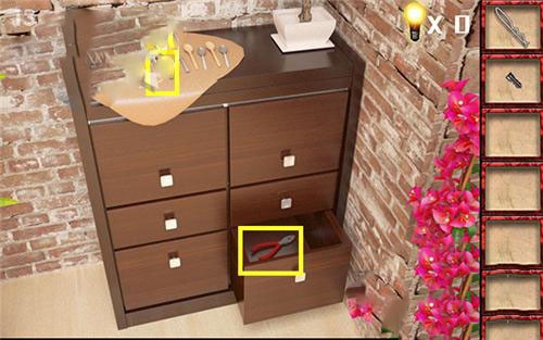 7、在后面柜子上拿到小刀和抽屉里的钳子。
