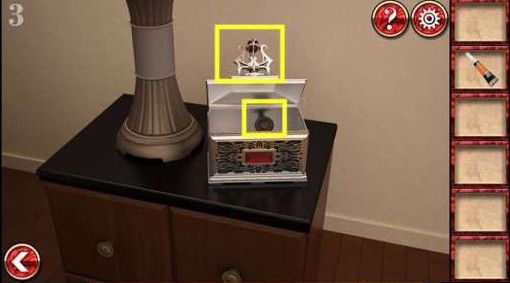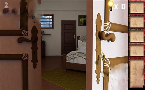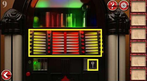 6、将硬币投入右边的老 虎 机里,快速点击灯泡,使所有的灯泡同时亮起,就能得到钥匙了。最后用钥匙打开门就可以通关了。