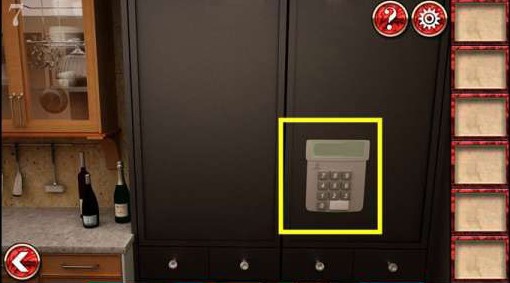 8、来到左边的柜台,把电池放入计算器中,输入281,就可以打开281的柜子。拿到钥匙,开门过关。
