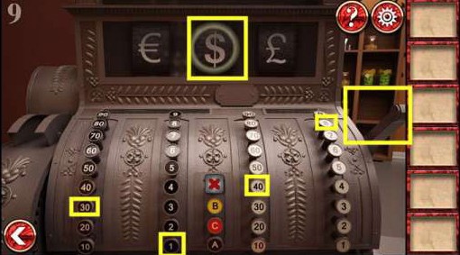 5、将把手、螺丝用螺丝刀组合在一起,装到柜台上的收银机。然后选择美元,点击四个数字30、1、40、8,按一下把手,就能得到一个硬币。