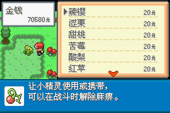 月见山可捡道具:TM09种子机关枪、解麻药、药水、神奇糖果、月之石、穿洞绳、更升剂(精神碎片)、星球之碎片、TM46小偷、解毒药