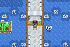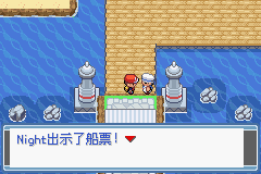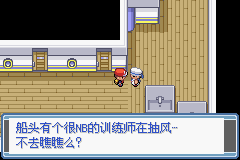 上船,船上可捡道具:TM31瓦割、甜桃、辣樱、涩栗、超级球、超级药水、超高级药水、PP小补剂、TM44睡觉、星球之砂、攻击提升
