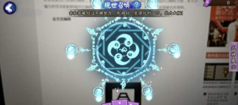 现世召唤是通过手机摄像头扫描召唤阵来召唤式神的,目前官方提供了两个召唤阵图案。