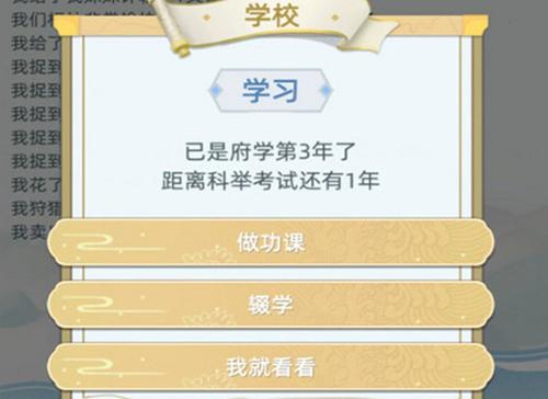 2、参加科举考试当你学识和年龄到达一定数值后,就能参加科举考试了,从最开始的乡试一步步考试,成功通过后你的学识就会提升,由私塾变成学府,同样也是每一年都要记得学习,同时考试失败会影响到学识数值。