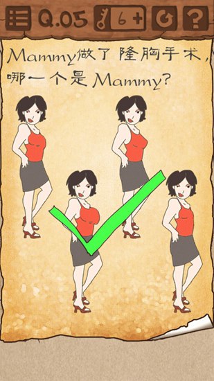 将手机横放,可以发现这几个角色胸部有变化,选择右上的那一个。