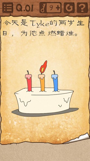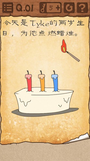 移动火柴点燃中间的蜡烛,然后把手机向左或右倾斜,点燃第二根。