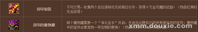 温馨提示: 1.封印的魔物罐从南部溪谷地下城中获得,不可交易。