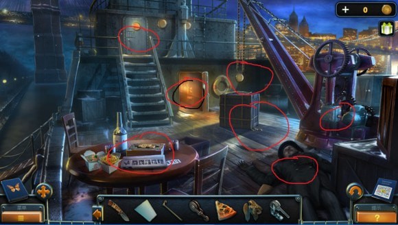 20、点守卫,得钥匙;桌子上看报纸,捡筷子,拼图游戏盒少图片;起重机缺摇把,钥匙夺在大木箱下,安吊钩;驾驶舱大门需要图形提示;去船舱。