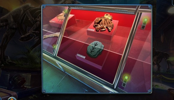 57、去恐龙展示馆的保卫室,安灯泡,输入15082,关闭报警器。去展示厅,打开展示柜,得神像碑块。