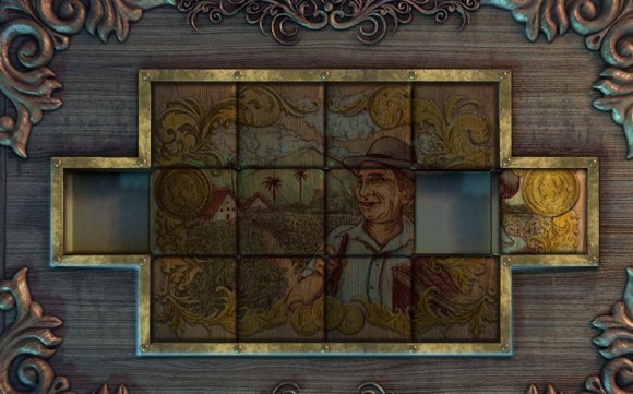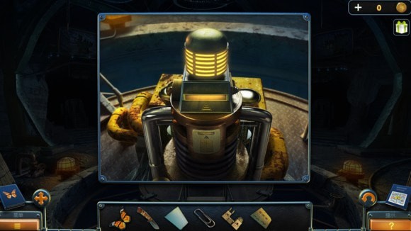 53、回黄衣老头的书房。把电线插头接到地球仪上,拼到地球仪的图案(好象是北美洲的地图),得灯泡;安打字机部件,转动得到纸片。