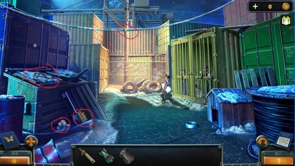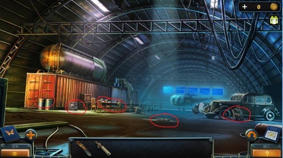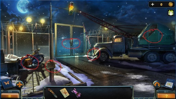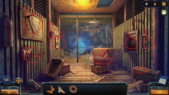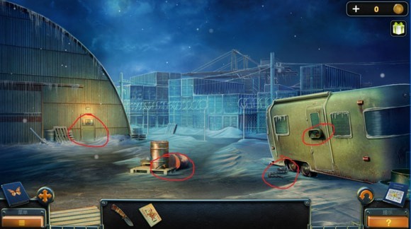 81、查看地面的手提箱,需要密码;点被捆住的男人,割开绳索,解救男人,男人告知失踪的儿童被关在仓库的集装箱;点汽车,地面的木板上629密码;密码开手提箱,得到仓库的路线图;桌子,捡小汽车模型,电水壶;点铁柜,需要开锁的圆片差几个;集装箱顶上有东西,但上不去要找东西做踏步。
