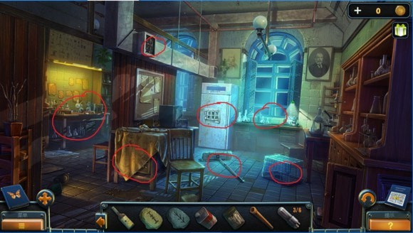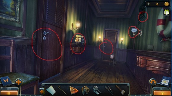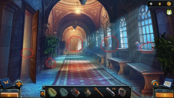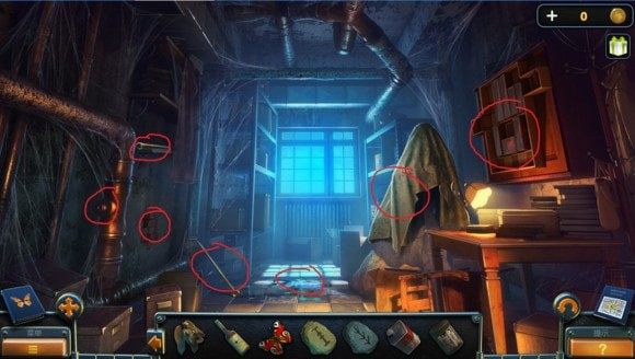 63、上二楼,左边门打开玩小游戏,提示一下,锤子砸贩卖机,毛刷刷屋顶最左边的蜘蛛网得唱机的唱头,其他都 还简单,得水龙软管。盆景花盆点开土得灯泡(这个游戏到底要找多少个灯泡,就不能一次买一盒);花瓶底部缺一个圆形装饰物;窗台外有一个灯泡,但不能砸窗户(刚才连贩卖机都砸了,现在不能砸玻璃,到底哪个值钱些);楼道尽头的房间锁着,要找钥匙(***调查的记者就不能带个万能钥匙或者电钻)。