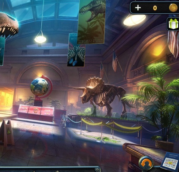 19、回头,搭木板上游艇。玩小游戏,得弹弓。去恐龙馆的地下大厅,打大梁上的雕像。回到桥下,用棒球棍砸电话亭的面板,得硬币;投硬币看望远镜,得到密码92147,开货车上的木箱(中间是数学符号/,),得麻醉枪,去码头麻醉守卫。上船。