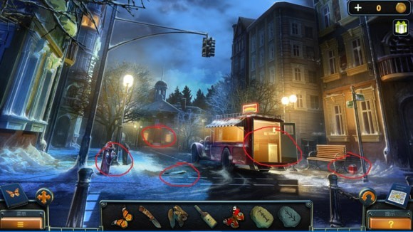 59、看地面窨井,需要工具掀起;打开消防栓,放水;打开食品车的门,玩小游戏(糖块粉碎后撒在收银机上得指纹,打开收银机),得到胶水;点板凳,有学生证,把照片揭下来,(等会要放记者自己的照片上去,冒充);捡煤气罐。