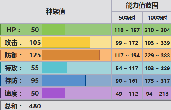 105物攻的大力士,放在四代连想都不敢想——自带一段剑舞效果太逆天,传统大力士玛力露丽和恰雷姆(瑜伽之力)物攻都很低,即便如此输出也仍然养眼,而到了Mega时代,M大嘴娃和M恰雷姆携手将基础输出又提到了一个相当高的层次——105极攻大力士已经超过了255种族极攻这个上限,堪称逆天,几乎不是盾、没抗性的PM都在其收割之列,于是六代M大嘴以480的总种族被BAN去了UB,堪称一绝,也是一个翻身过猛的例子。作为低种族Mega,GF良心地没有浪费一点种族,双防各加40,物攻表面上加了20,对于M大嘴来说是再合理不过了,又肉输出还逆天,这个物耐加上M前的威吓使得大嘴Mega回合对着物攻手强行Mega是相当安全,很容易创造黄金一回合输出的机会,特耐也不再是见光死,满攻蝶蝶气合弹都不能2HKO满HPM大嘴。速度是唯一劣势,使得大嘴极其依赖偷袭先制,于是七代超场出场和偷袭威力削弱后M大嘴就留在了OU,这对于M大嘴其实算是以退为进,毕竟OU比一堆神兽基佬的UB生活要丰富得多。