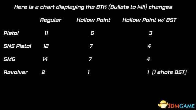 但是装上空尖弹/中空子弹后这把枪也是有一个很大的提升,只需要7发就可以打死满血玩家,对付不穿护甲的NPC也是非常的给力。