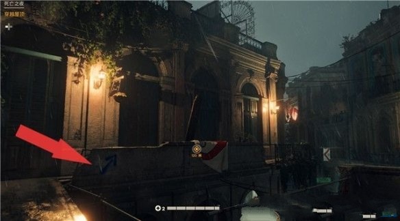 走到另外一个建筑的阳台,留意这个位置的箭头标识。