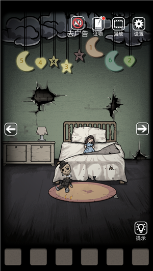 1、小孩床的房间,上面星星月亮按等式排好,54×3=162;地毯右边有一个镜子碎片