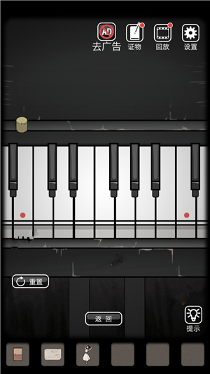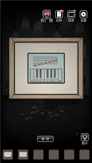 10、钢琴场景,根据墙上的线索,红点之后是1234567红点,根据之前的音符5534553弹奏,出现新的音符