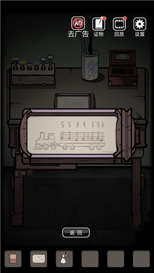 6、镜子场景,用画笔画中间物品,玩填格子游戏,得到音符5534553